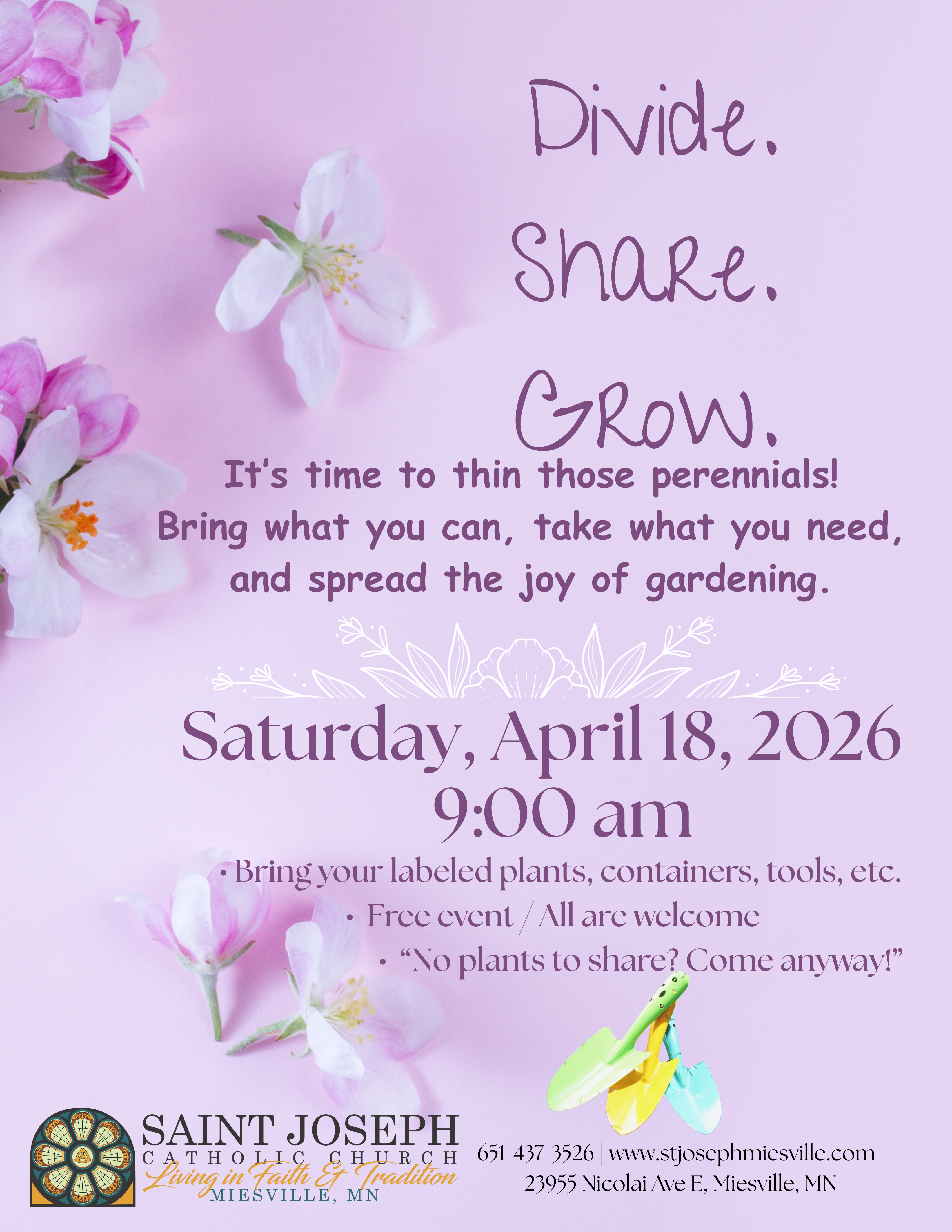 plan to attend our spring events to grow your faith, friendships with fellow parishioners, and a beautiful garden this year!