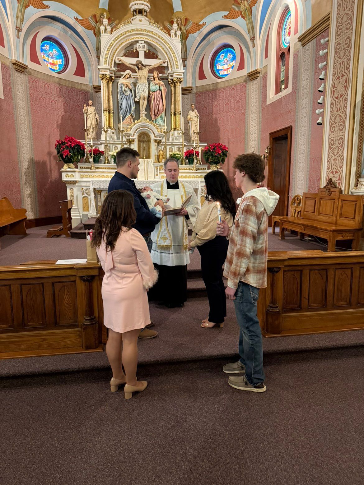Our Baptisms and Baptism classes are conducted every other month. The child’s Baptism can occur during one of the parish Masses (preferred), or can be conducted at a ceremony after one of the Masses.